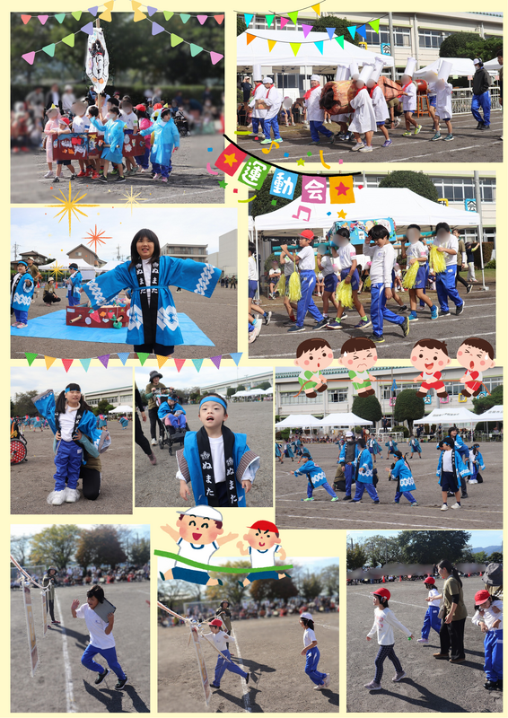かけっこやなかよしパレード、ソーラン節に出場しました。なかよしパレードでは、東小の友達と一緒に準備したそれぞれのモニュメントを掲げながら、仲良く行進することができました!
