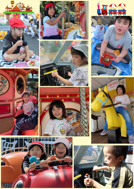 メリーゴーランドや木馬などのアトラクションで遊んだり、おいしいお弁当を食べたりしながら、楽しく過ごしました。
