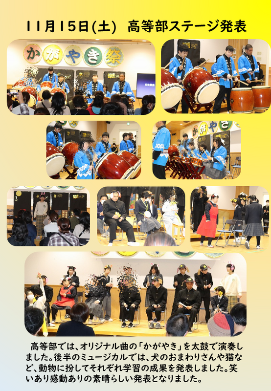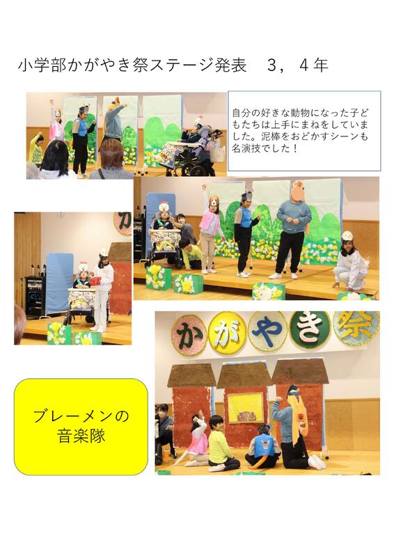 かがやき祭に向けて、準備や練習に取り組んでいます。ステージ発表では、衣装や大道具をクラスのみんなで協力しながら準備したり、繰り返し発表練習をすることで堂々と表現できるようになってきました。